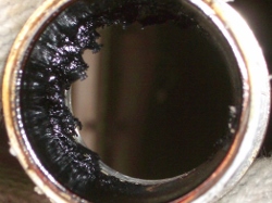 塗装や乾燥工程等から飛散するタール状物質の発生源は塗料由来のものが多く、これらの物質は発生時には気体であるものの、乾燥炉から触媒に到達する間に冷却されることによりミストあるいは固形状になっています。触媒反応温度が低い場合は、その一部が触媒上で酸化燃焼せず、炭素系物質が触媒表面上に生成、被覆して性能を低下させてしまいます。